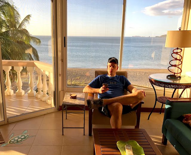 This is the view from the back, which faced the beach and ocean. Our unit was on the top right hand side. Most of the other units were vacant, except for a couple other's which were rented out to permanent residents. The two story top unit next to ours was rented by a woman named Babe, and her dog Besito (meaning "little kiss"). Babe was originally from Florida but had lived in Costa Rica for over sixteen years. She was a good resource during our stay there.