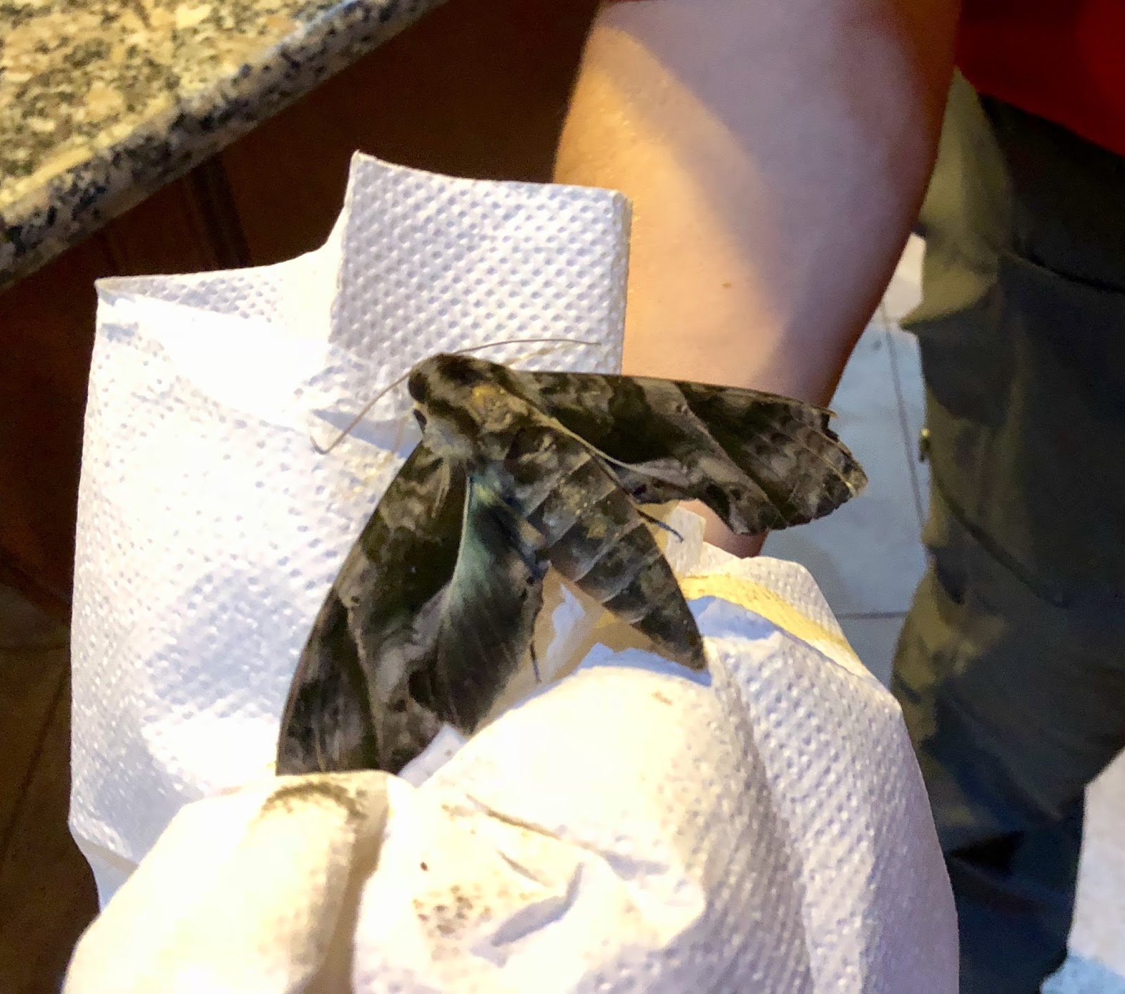 While making dinner, Blake found this little moth in the kitchen while looking for a serving platter. Even though it wasn't alive, it still kind of creeped me out.