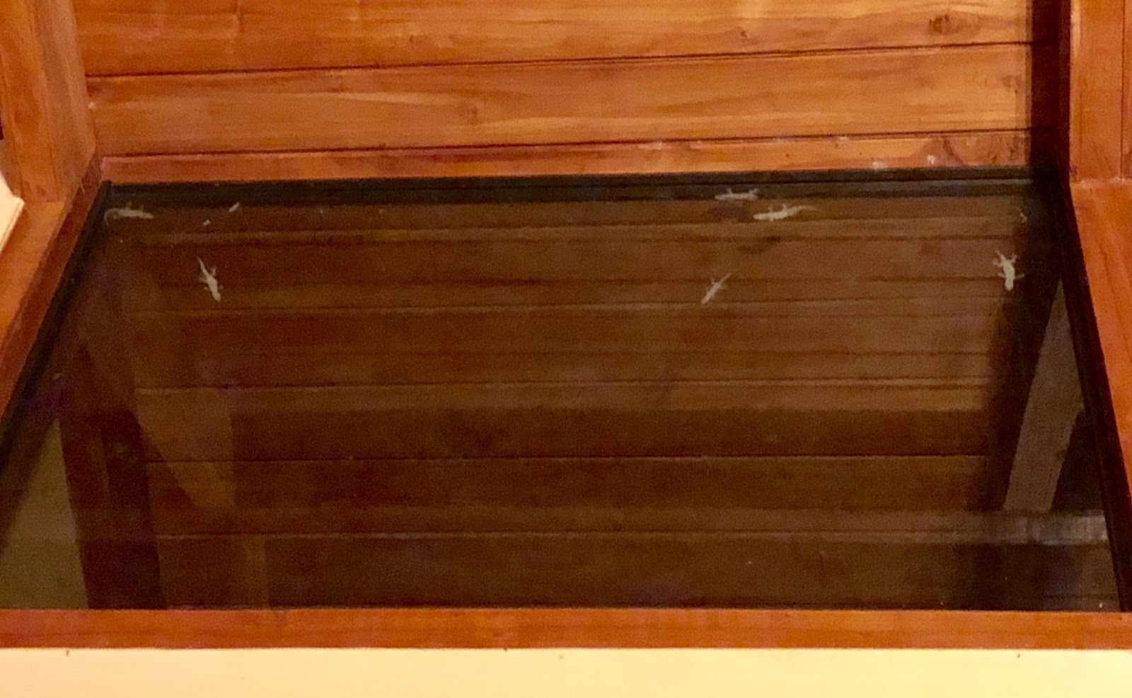 and then while I was looking at the moth I saw a million little lizards on all the skylight windows! Good thing they were on the outside (at least that's what I kept telling myself!).