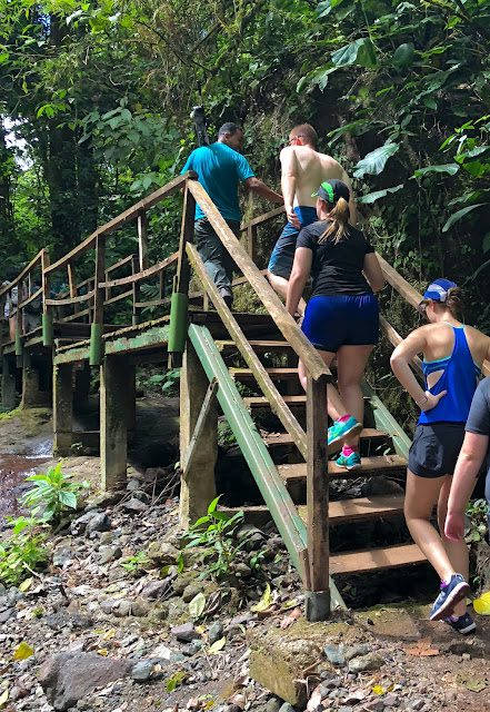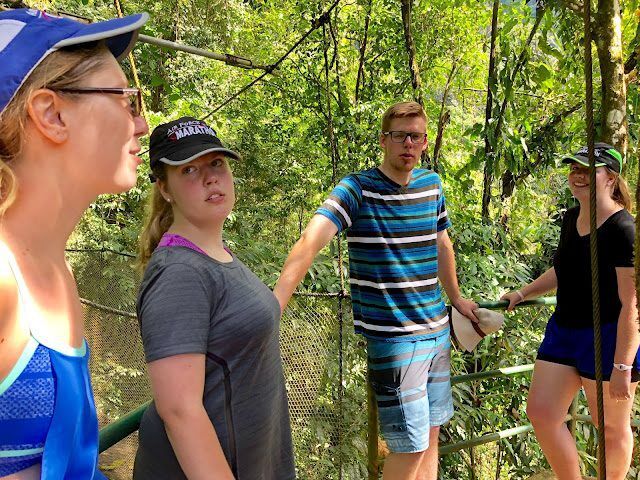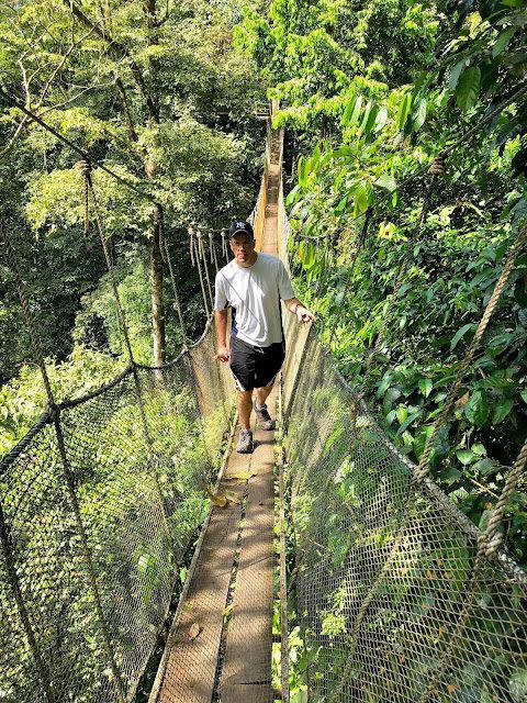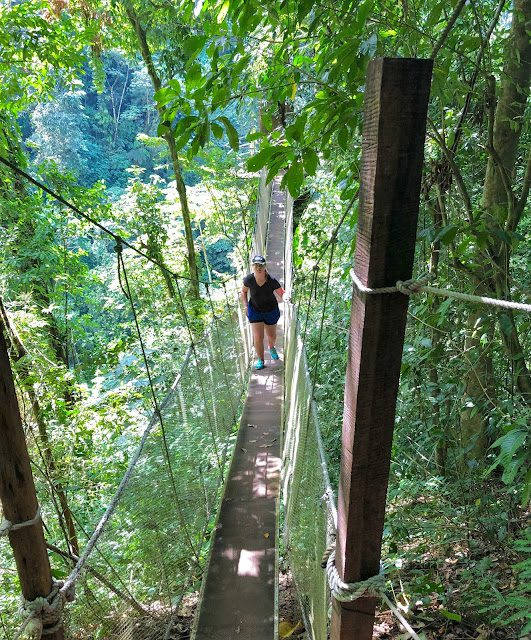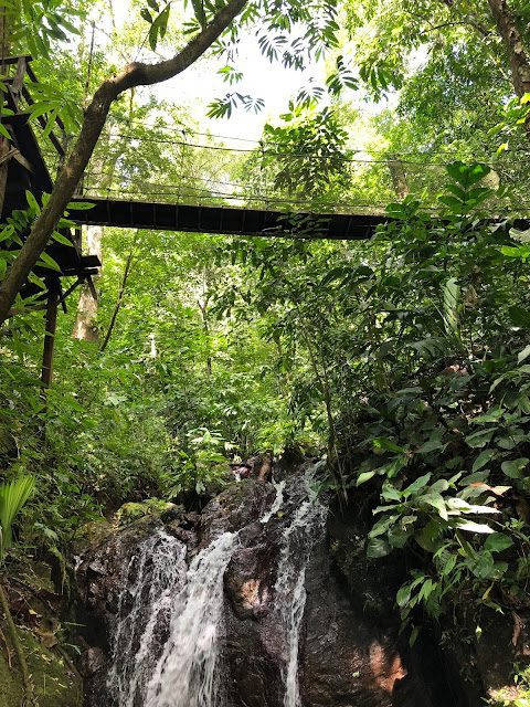 Another exertion I wanted to go on while in Costa Rica, was a rainforest canopy bridge tour. So we booked a tour through the Rainmaker Conservation Project, which is a privately owned Rainforest Reserve that spans over 1,530 Acers of 90% virgin rainforest. It's biodiversity covers 70% of all the flora and fauna species found in Costa Rica. Above is a picture of Rainmaker's gathering place, which also included restrooms and a small restaurant.