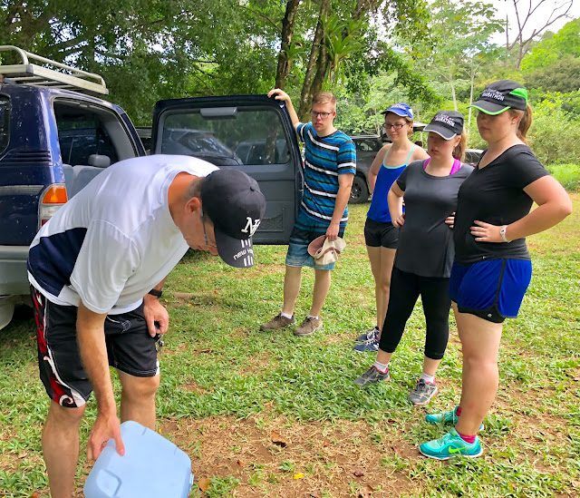 Luckily, when we arrived at the top, Breck was there to meet us, and take us to where Brad, and the others, were waiting. Apparently, while Brittney and I were swimming and exploring, the rest of the gang drove back to Quepos and got some weird type of shaved ice with ice cream, flavoring, cream cheese pieces, jello, and whip cream. Needless to say, they all had gut aches the rest of the day. Also, at one point they tried to park and some guy told them they couldn't, so Breck told Brad to park anyway because it was just another person trying to get money. But when the guy came to collect, Breck jumped in the car and dropped his phone on the ground not realizing it. As the guy came closer Breck could see him yelling and motioning to the ground. So Breck opened the car door and grabbed his phone (which got bang up a bit) as Brad sped away. It sounded like they too had some fun adventures of their own!
