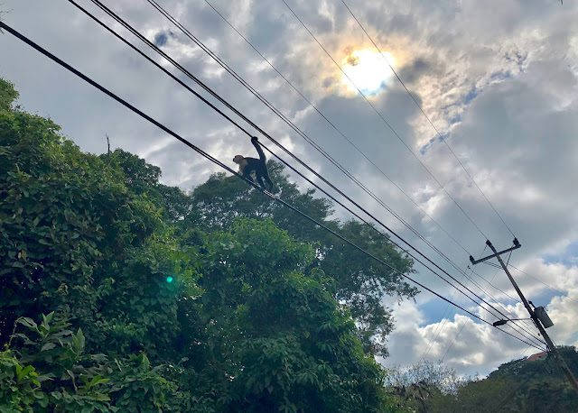 but when we started walking, he began walking too, on the electrical line right above our heads.