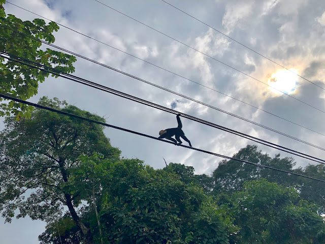 On our hike back, to meet Brad and the others at the top of the mountain, we saw a bunch of monkeys jumping and swinging through the trees.