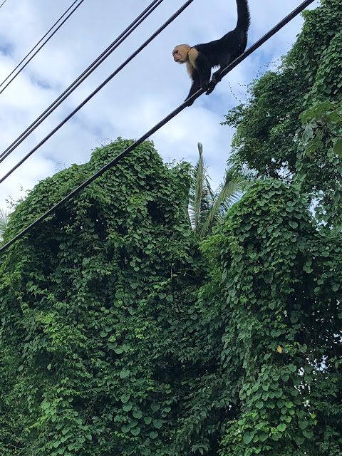 The White-headed Capuchin Monkey is one of the most common monkeys found in Manuel Antonio Park. The Mantled Howler is another popular monkey in the Park but it is more of a recluse, and is usually heard before being seen. Brittney and I heard a Howler on our walk through the jungle to find Beisanz Beach, and let me tell you, it was one of the most freaky, horrific sounds I've ever heard! I felt like I was in the middle of the movie Predator.