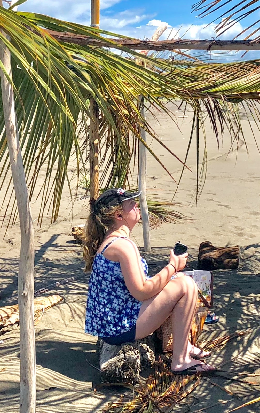 Merinda found what used to be a little shelter made out of palm leaves.
