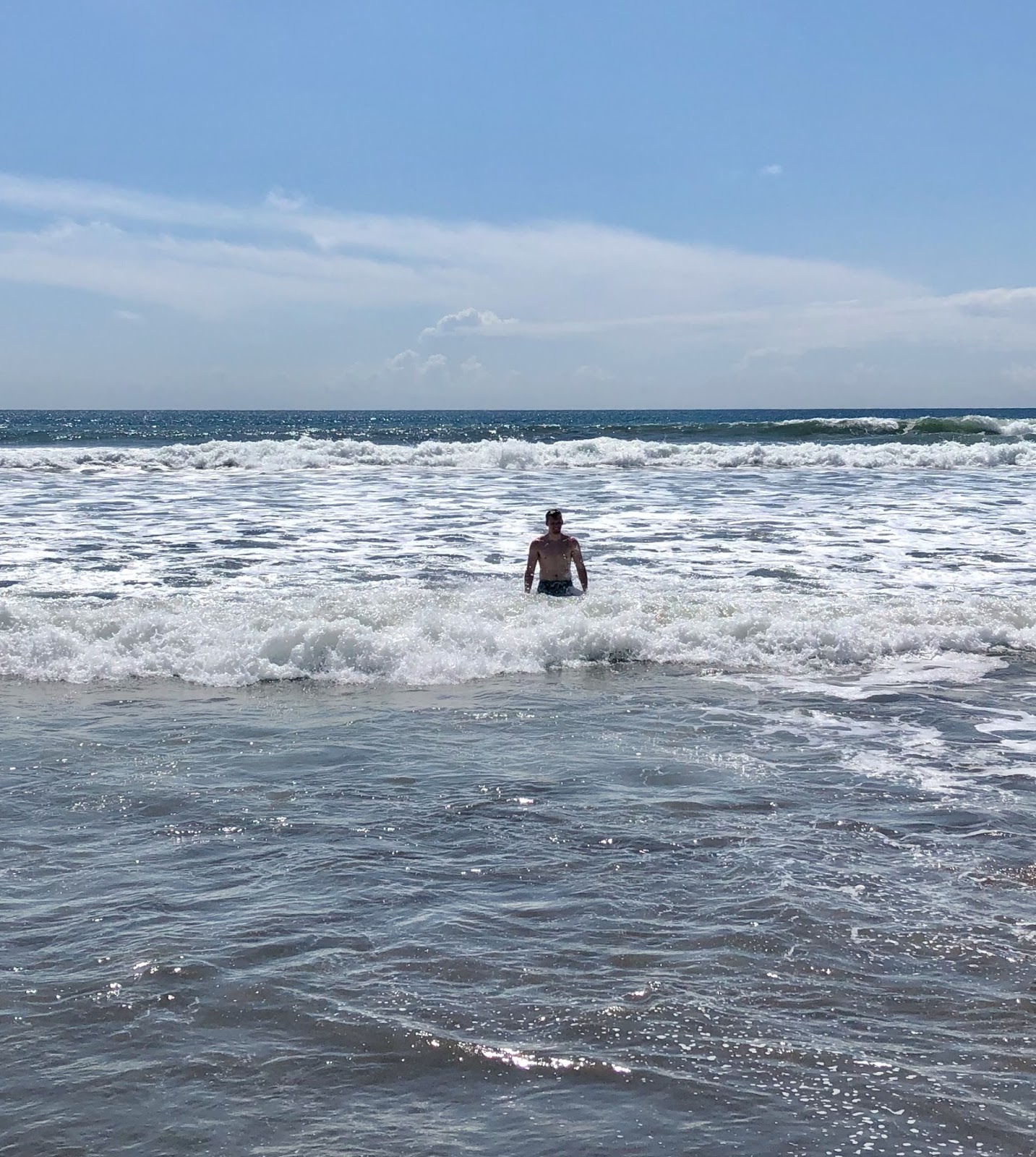 Breck couldn't wait to swim in the big waves,