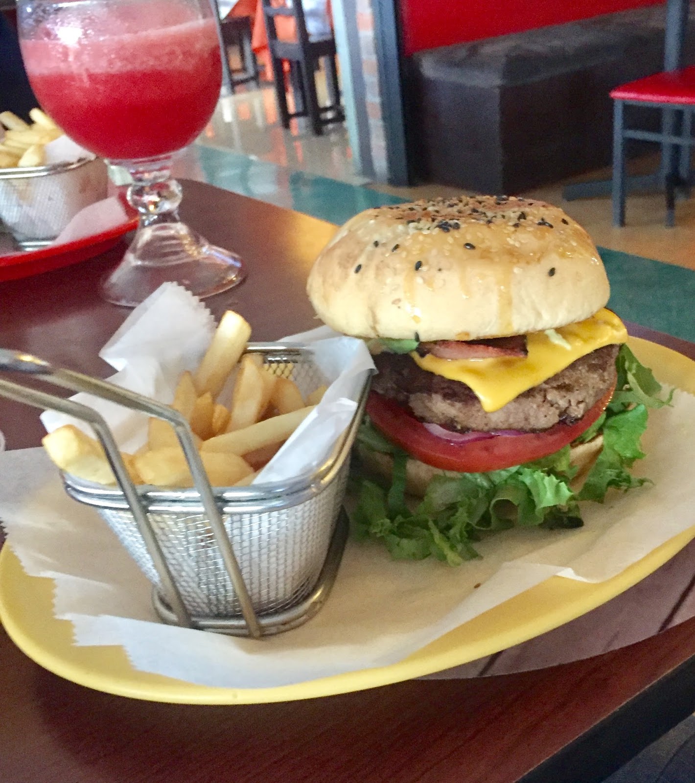 After a long day of travel and our little walk, we were all very hungry so we ate at Taco Tico in the mall. I think we were all ready for American-type food, so Merinda ordered the hamburger (apparently with American-sized portions as well).