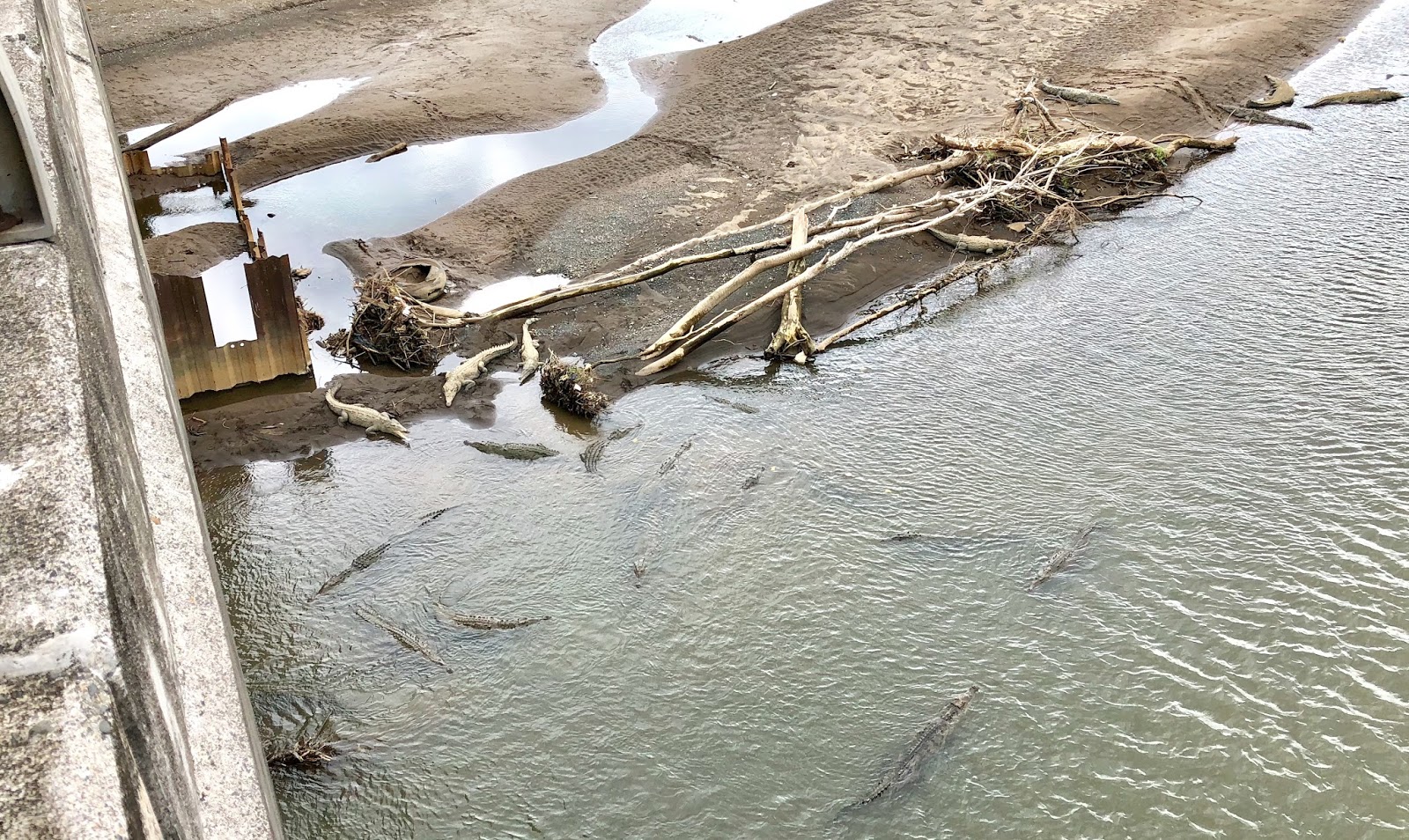 Last year in Costa Rica there were seven reported crocodile attacks. One was fatal, and one was an American surfer who lost his leg while surfing in Tamarindo. I was perfectly content watching the crocodiles from the bridge above!