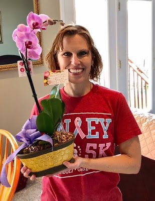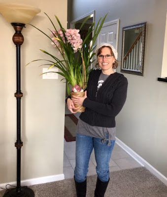 Brad's work also gave me flowers. Brad's boss and co-workers are so thoughtful! Since my favorite color is pink, and my favorite flower is an Orchid, they searched far and wide to find me a pink Orchid.