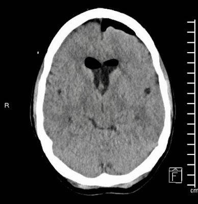 The surgery was a success, and the above picture is of my CT scan the afternoon after surgery. The cyst is gone and there is good flow of CSF through the ventricles. They also closed my skull with titanium plates and screws which the doctor assured me would not go off at the airport.