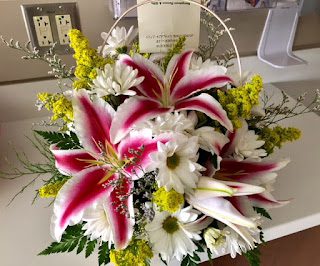 and brought these beautiful flowers, compliments of all the people in my gym classes. I can't wait to get back there and start working out with all of them again!