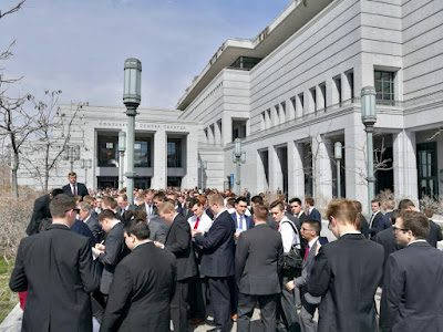 Brittney and Sean got tickets from Brad (the Bishops get so many tickets to hand out to people in their Wards who want to attend sessions at General Conference) to attend the Saturday morning session...and good thing they did, because it was pretty mind-blowing!