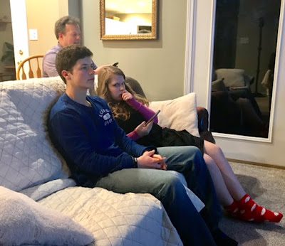 That evening we played a game just for Merinda (who always wants to play games with the Holts). Breck set up a game called Use Your Words, which is played as a group, on the internet, where everyone uses their cell phones.