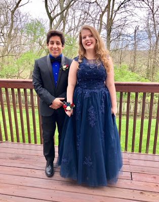 Merinda in her beautiful dress. Interesting story about that dress... Mom and Merinda conspired behind my back (right after I got home from the hospital) to order a Prom dress from China. It didn't make it in time (big surprise) so we were scampering around the week before Prom trying to find a dress (I didn't want to tell Merinda "I told you so" but...). Luckily, Shannon, a friend of mine from church, mentioned that her daughter Juniper had a dress we could borrow, so Merinda tried it on and loved it (good thing it was blue to match Luis' new shirt)! The dress from China came soon after, and was good quality and fit Merinda perfectly, but Merinda didn't like how it looked on her (which is always a risk when buying something based off a picture).