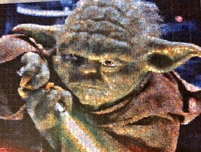 when you zoomed in (which I had to do with my camera) each puzzle piece was actually a scene from the Star War's movies!
