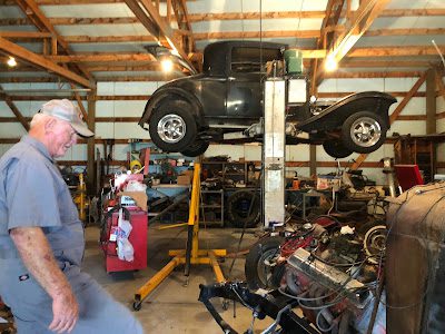 Uncle John and Jerry's old cars they're restoring in the garage