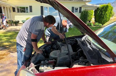 Jason and his brother Jerry trying to diagnose our red car