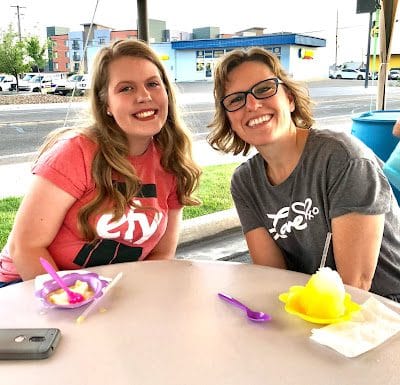 Eating shaved ice from Hokulia (sooo good!)