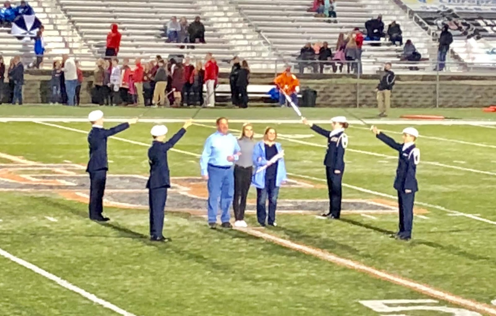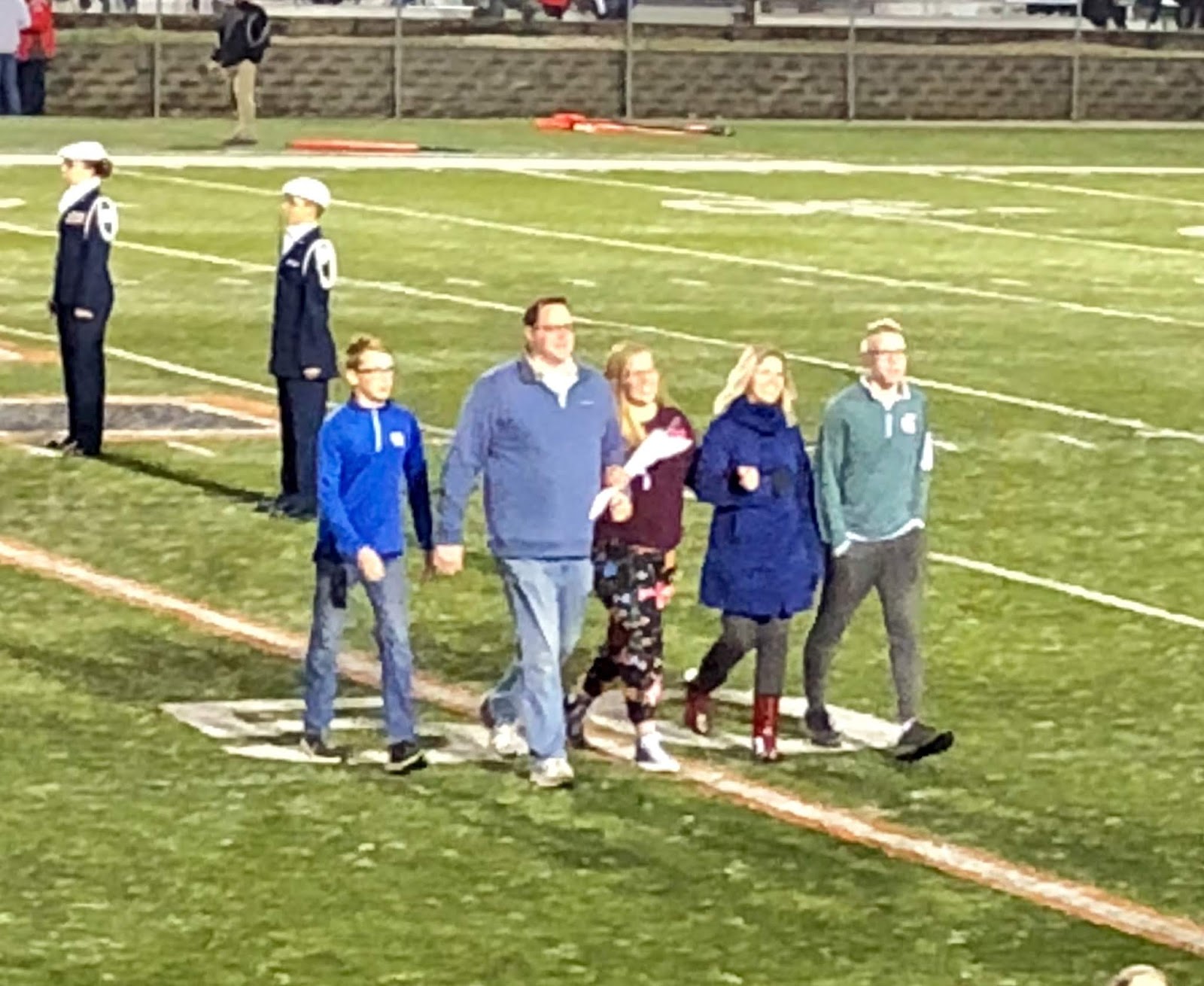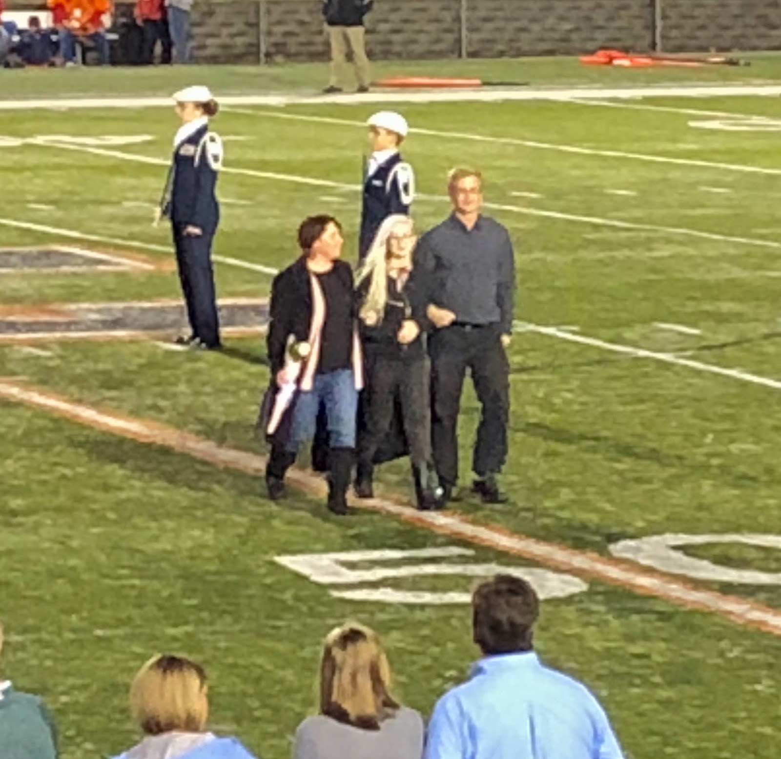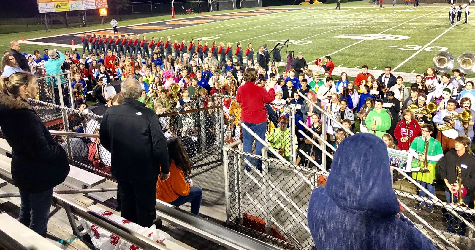 Because our football team didn't make it into the playoffs this year we got to jam in Senior recognition for all Seniors from the football team, band, and cross country into one night, which also just happened to be Halloween band night!