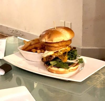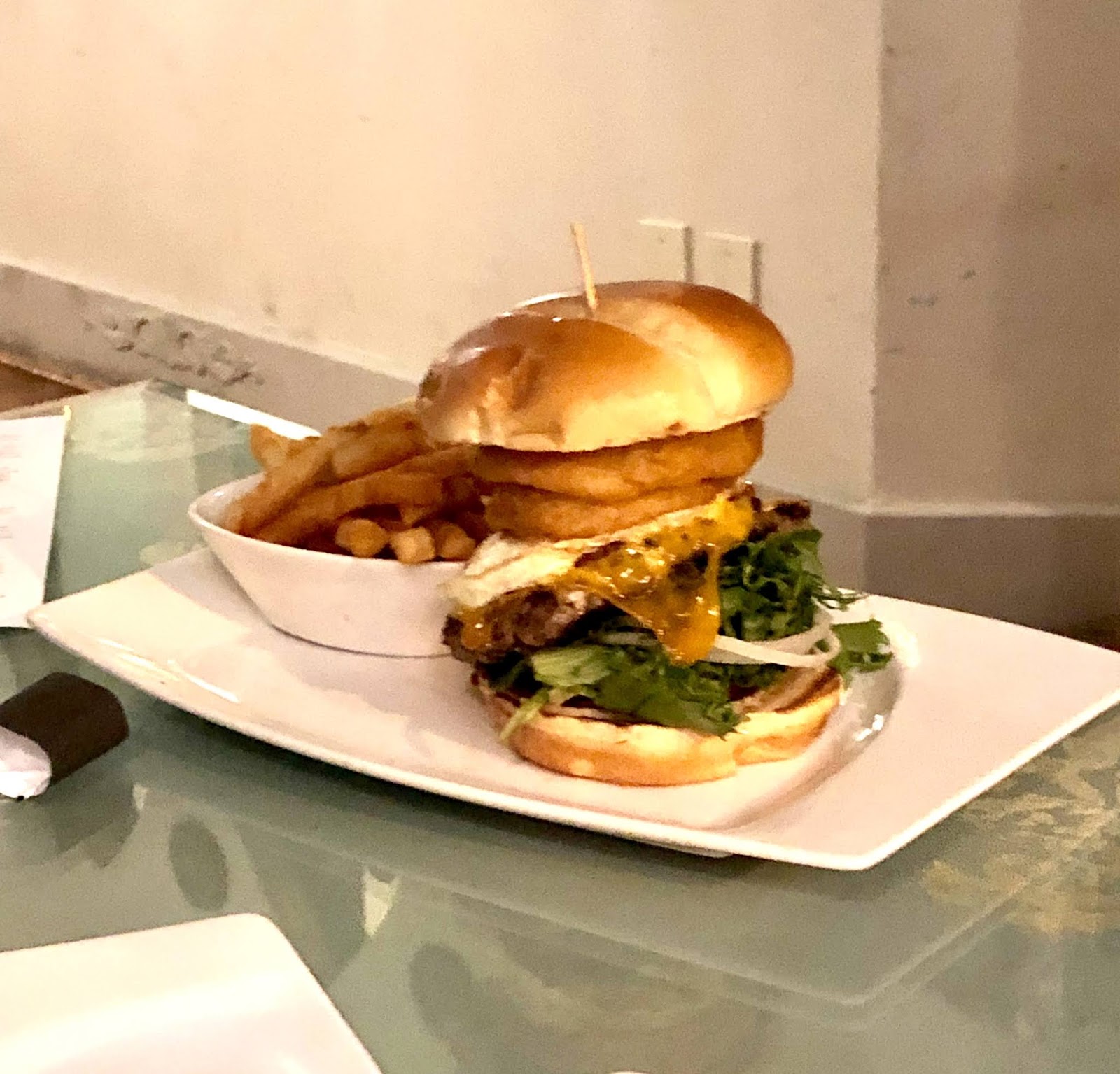 The best dinner of the night (according to Brad) was Veronica's hamburger complete with onion rings and an egg.