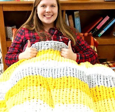 A blanket her roommates crocheted for her (just one of the reasons they were so awesome!).