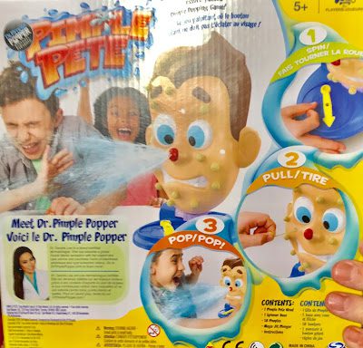 The object of the game was to pull out the pimples, as delicately as possible, so as to not get sprayed in the face (with water people!). The pimples were rated on a scale from 1-3, with 3 being the most difficult pimples to remove (back of Pete's head, the more difficult pimples had bigger and more gnarly pusstuals).