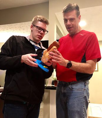 At the end, the players who didn't get sprayed, total their points, and the one with the most points wins, which in this case was Brad! Needless to say, he loved his gift!