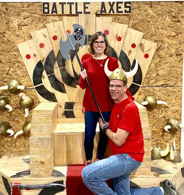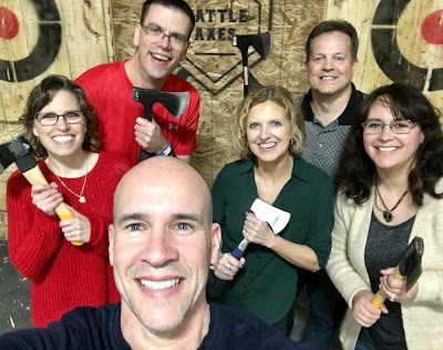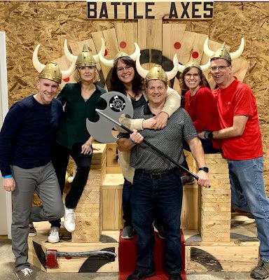 Instead of just going out to eat, this year he wanted to do something different, something we've never done before. So he told everyone to wear comfortable shoes, and then surprised us all with an evening of ax throwing at Battle Axes in Lexington!