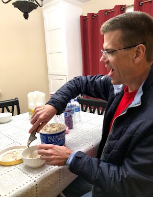 No birthday party would be complete without singing "Happy Birthday" and eating ice cream and cake, which we did after dinner, at the Holt's house.