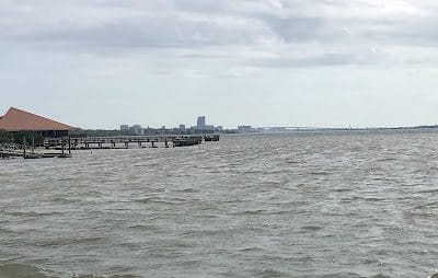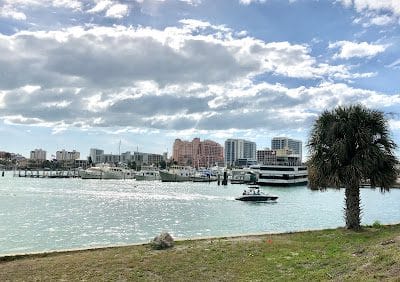 (view of Clearwater harbor and bridge from Sand Key bridge)