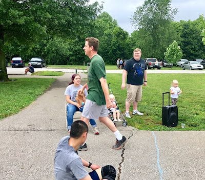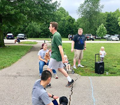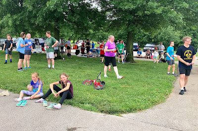 After our morning run, Brad was once again assigned to cook endless hamburgers and hot dogs for our Wards annual Memorial Day Picnic at Scott Co Park.
