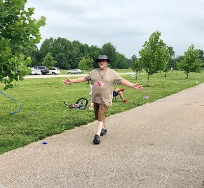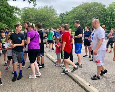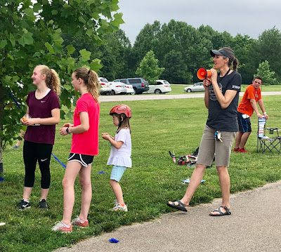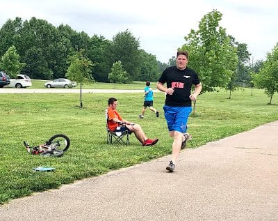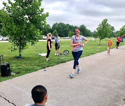 Amanda Johnson cheering on Koen, the youngest Johnson runner.