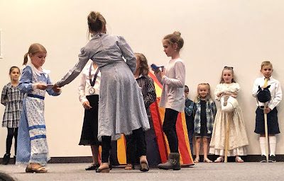 I next visited Melanie and family and while there I got to see Aspen perform in her little community play Mary Poppins, which was directed by by a couple of teenagers! Aspen was the narrator, town's person, and singer/dancer in the chimney-sweep and kite-flying scenes.