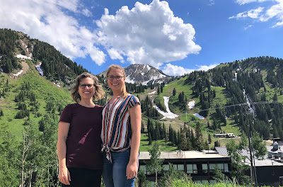 On Saturday we celebrated Brittney's birthday by paddle-boarding on the Jordanelle Reservoir, unfortunately it was so windy and rocky we spent most of the time just paddling back to shore while sitting on our boards (Sean had to paddle Brittney back with a rope tied to her board since she ran out of strength half way through ...I don't think he'll be paddle boarding again anytime soon). Sean was also nice enough to help me get my feel of the mountains by taking us on a drive up Little Cottonwood Canyon which is literally blocks from Brittney and Sean's home...