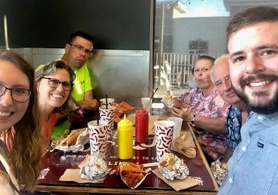 Speaking of gourmet food ;) after Brad arrived a week later we went out to eat with Sean & Brittney and Sean's parents Linda and John at one of John's favorite places to eat, J'Dawgs!