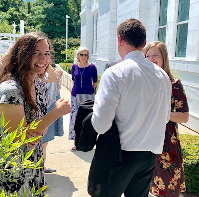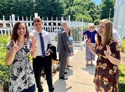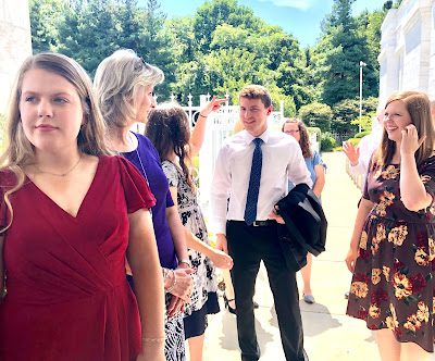 Wesley, Christina, and Aubrey entertaining themselves while waiting for Breck and Iris to come out of the Temple
