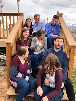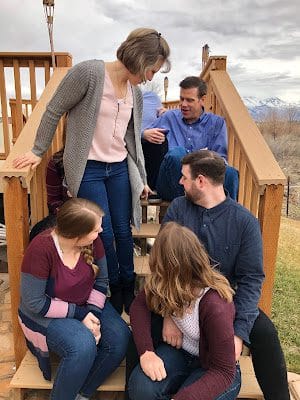 Just when everyone thinks we're done, Mom (yes, me) has the audacity to ask if we can take a few pictures on the deck stairs!