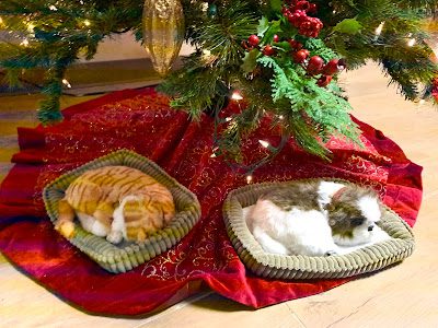 I just had to take a picture of this cat and dog sleeping under the Christmas tree because they were so cute, and sleeping so sound, which was a little strange considering all the noise. Bending down to get a closer look I realized they were actually stuffed animals! It was crazy--you could even see the movement of their stomachs with each breath.