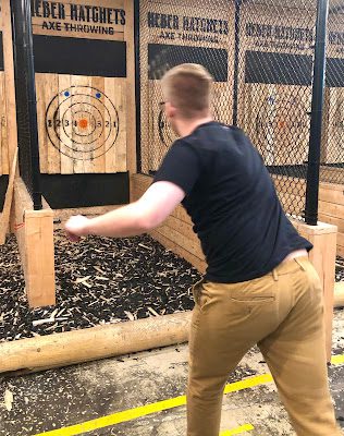 So Brad chose to go Ax Throwing with Breck and Iris thinking he could smoke them (since we've been before but this was their first time).