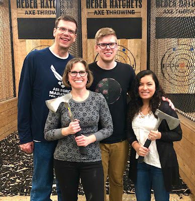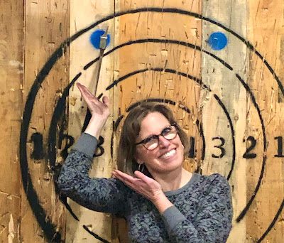 So note to self...don't throw axes after you've had your cervical spine fused, and don't make bets with your son and daughter-in-law who are actually very good ax-throwers!