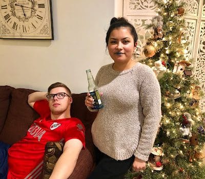 Brad trying Breck's ginger root bear which I also tasted, and it actually wasn't half bad.