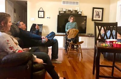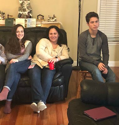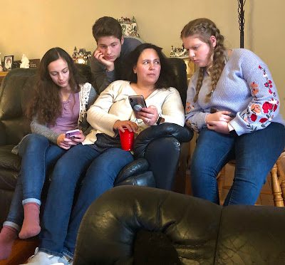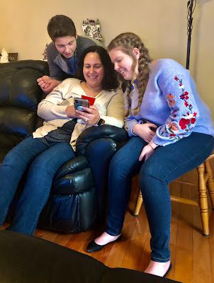 Veronica and Austin getting Merinda's help to play Words with Friends
