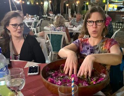 Our waiter gave us ladies a flower to put in our hair, and had all of us wash our hands in a bowl of flower petals.