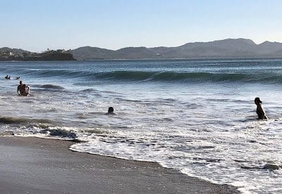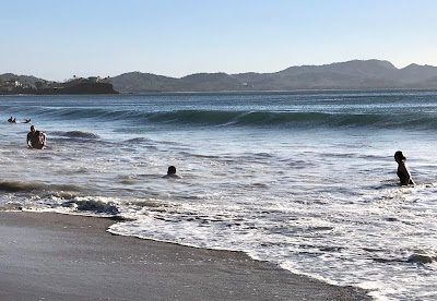 After wading up and down the beach, Matt, Brei, and Les couldn't take it any more and just had to jump in the water.