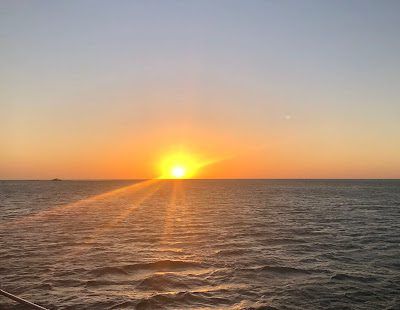 After dinner it wasn't long before the sun was already starting to go down in the western sky. We got invaded by a couple groups of people who came to the top of the boat to take selfies (or groupies??). Fortunately, they didn't stay long, and the entire boat was surprisingly quiet and peaceful.