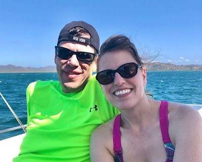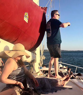 Brad was such a gentleman the entire cruise, he brought me all the pina colada drinks I wanted, so that I never had to walk along the boat and and get sea sick. At dinnertime he even loaded up both of our plates and managed to keep all the food on them despite awkwardly climbing up to our spot in the very strong wind. Debbie, however, wasn't so lucky on her way back, we watched all her chips fly off her plate, one by one.