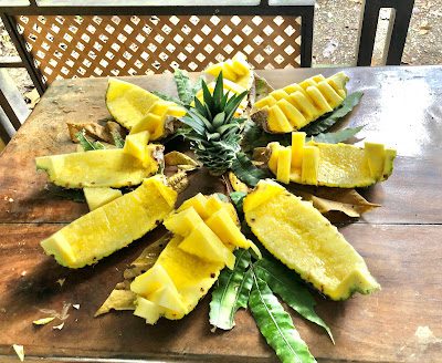 I ate as much as I could because I am so obsessed with pineapple. Our guide told us that the pineapple we eat in our grocery stores in the states are picked green and then sprayed with chemicals before being shipped in boats so by the time they get to the stores they are "ripe". But Costa Rican pineapples are ripened the right way...with natural sunshine (no wonder they taste so good!)