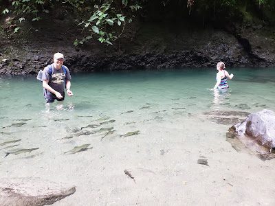 Once at the bottom we had to wade through the river (with a ton of fish) to get to the waterfall.