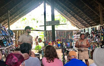 Matt and Brei walking into the main hut where we learned all about the Maleku people. This is also where they sold their carvings, which is how they make their living now days.