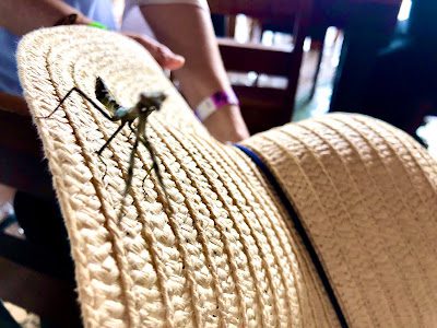 After trying to take a close-up of this Praying Mantis on Debbie's hat, it jumped on my phone and about gave me a heart attack!